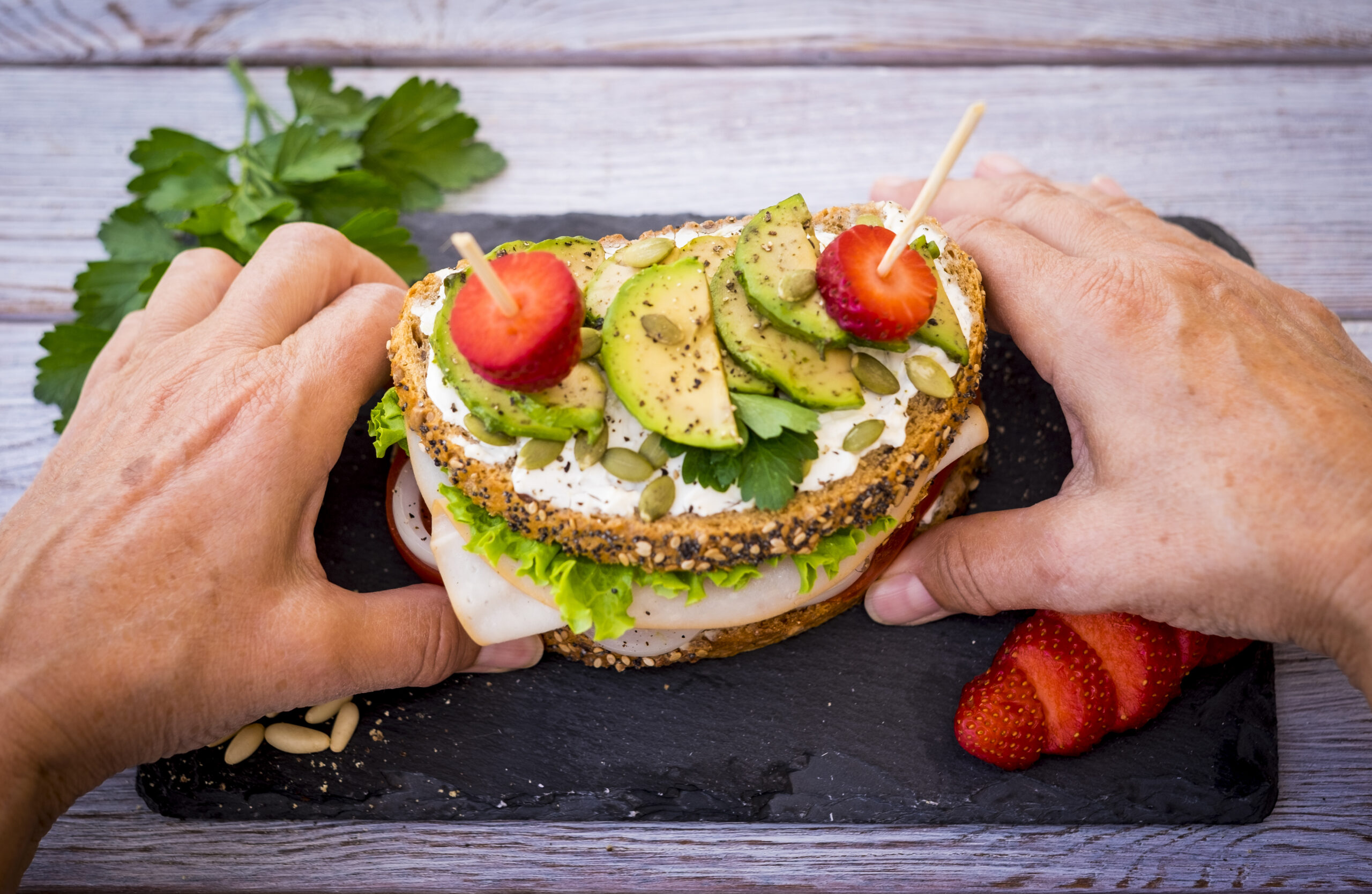 Szendvicsek különböző krémekkel, zöldséggel, kolbásszal, sós-édes süti, kávé-tea és alma, jó egészség, jó minőség, jó szívvel